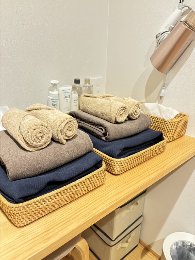 タオル類、ポンチョ、サウナマット、シャンプー、リンス、ボディソープ、洗顔、化粧水、ドライヤーを完備。手ぶらでもお越し頂ける施設となっております。